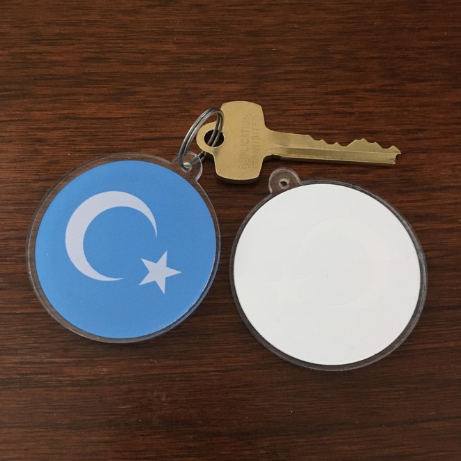 2" x 2" East Turkistan acrylic flag charms! You can use them as key rings, hook them into bracelets and necklaces, or even turn them into statement earrings!