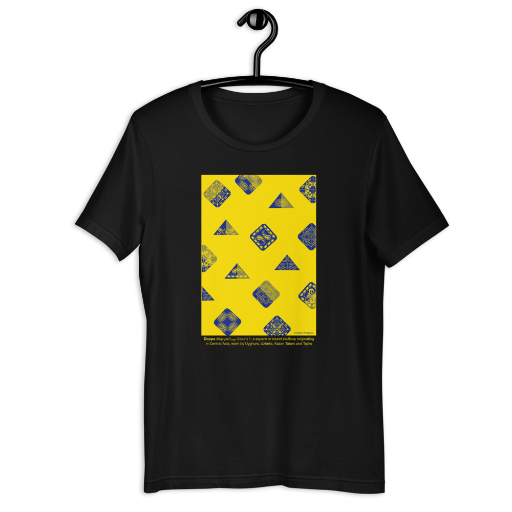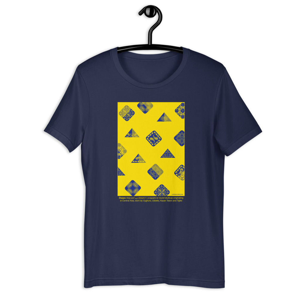 A beautiful design by Rena Iminjan showcasing doppa and imparting a love of Uyghur culture