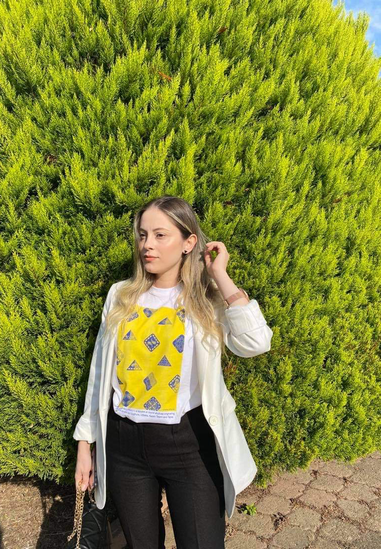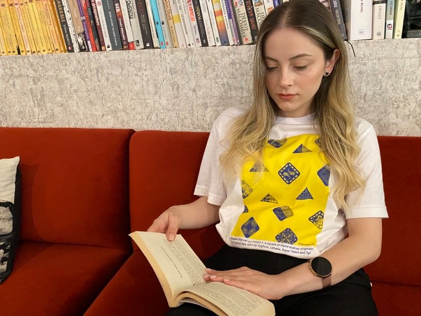 A beautiful design by Rena Iminjan showcasing doppa and imparting a love of Uyghur culture