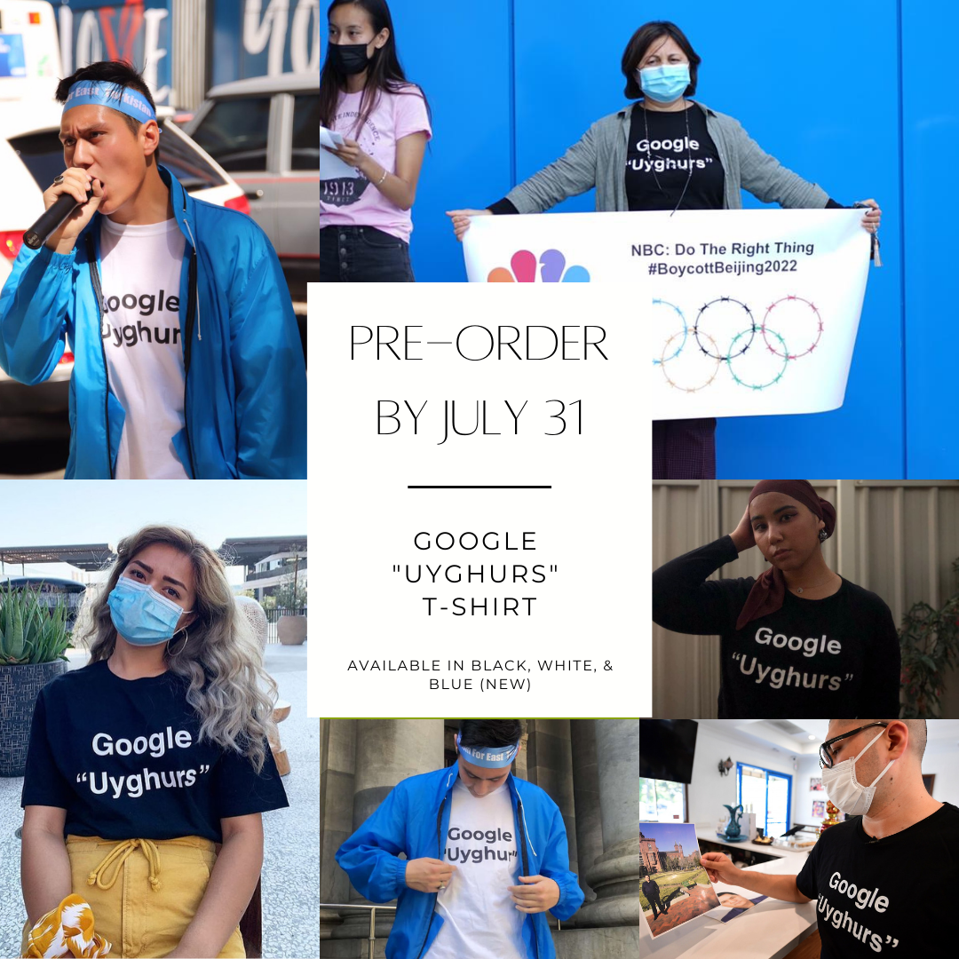 Pre-order your Google "Uyghurs" T-shirt by the end of July! If we reach 25 T-shirt orders we'll print and ship them out; if not, you will receive a *full* refund.