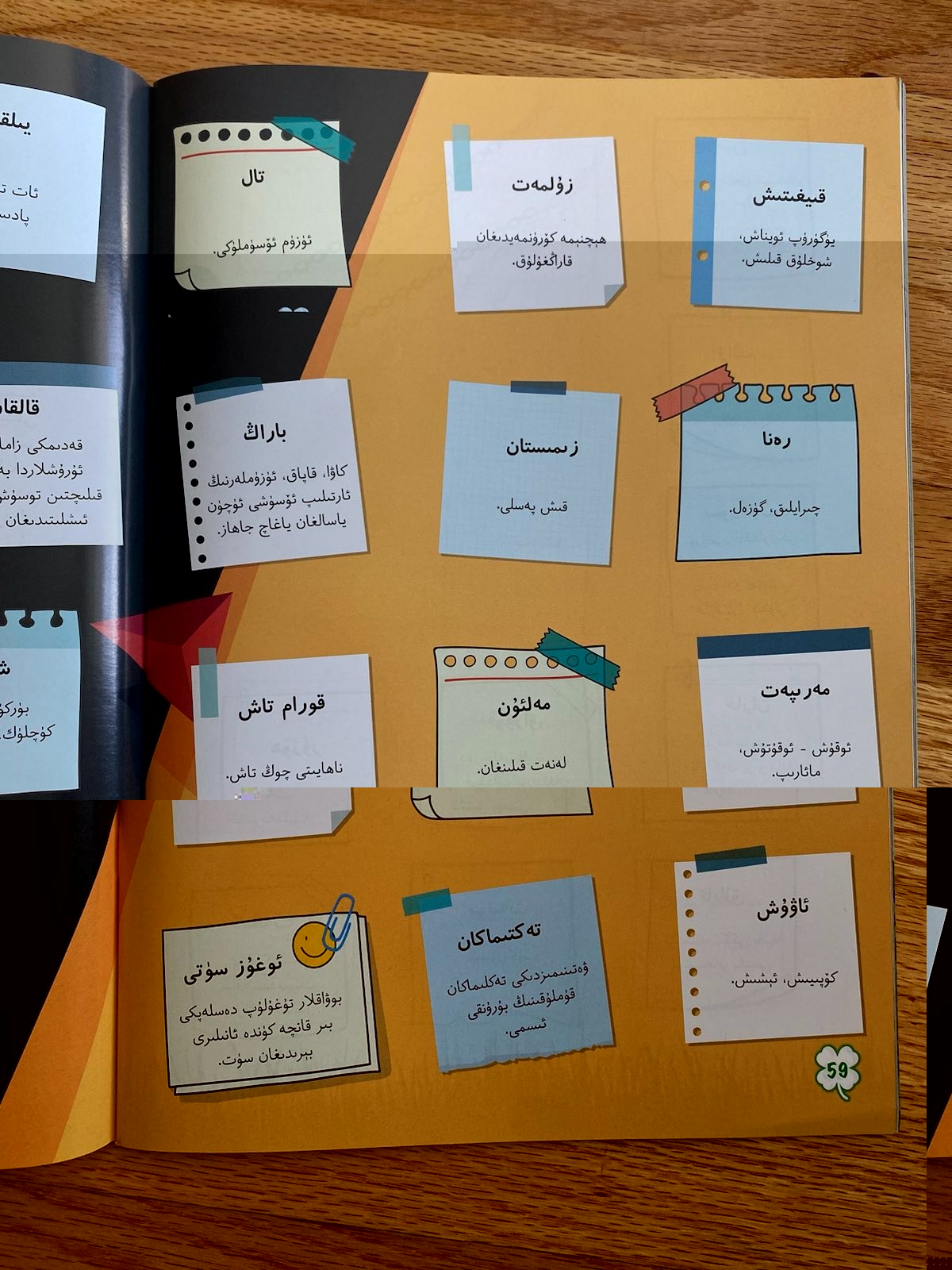 Each volume contains new stories, poetry, games, crafts, history, folklore, vocabulary words, art, and more aimed at kids who are learning Uyghur and Uyghur culture. They also include work and projects by children at Uyghur schools in Istanbul. Packed with colourful art by Ilminur Efvan, each is a beautiful and fun stack of knowledge to treasure with your children!